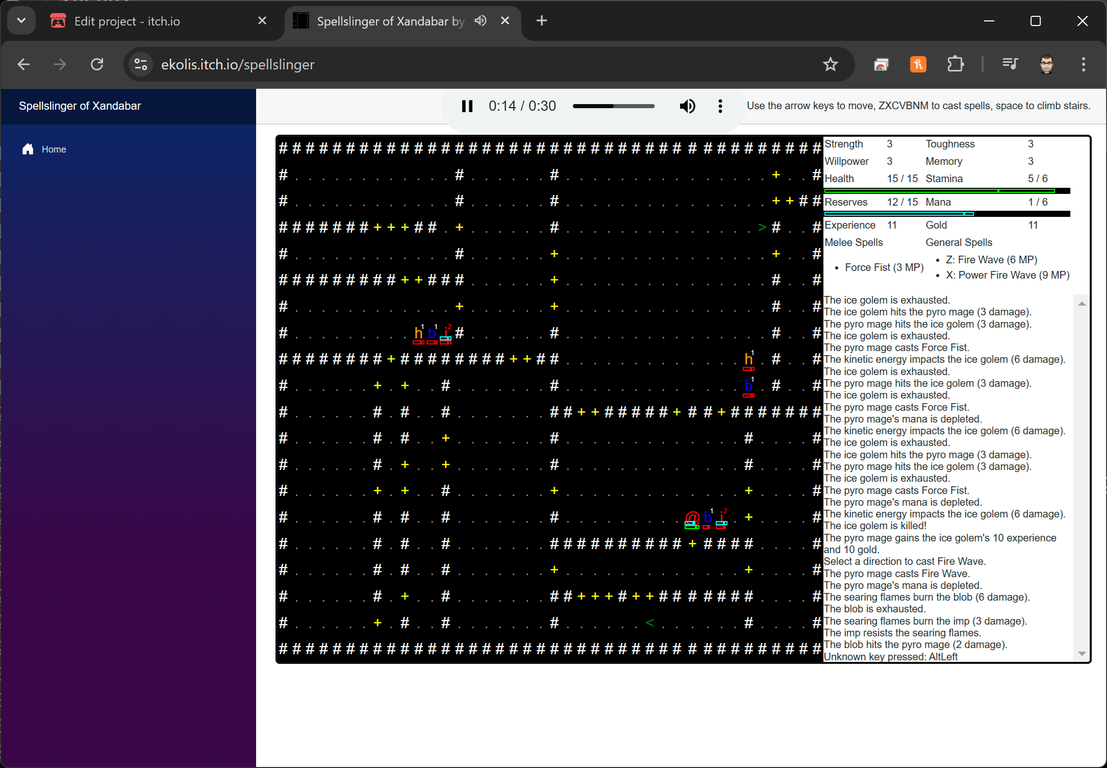 Spellslinger of Xandabar is my entry for the 2025 7DRL Challenge. Another 7DRL about magic? What am I, a wizard? KAFRIZZLE! It's another spellcasting focused roguelike, but this time you'll be able to create your own spells out of runes that you discover, in order to defeat or seal away the subterranean evil that threatens the town. Play the game in your browser!